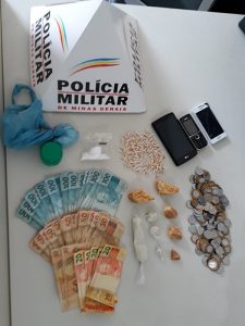 Foram apreendidos pela Polícia Militar 04 papelotes de cocaína, 04 pedaços de crack, 01 porção de cocaína, 01 ácido bórico, 105 pedras de crack ,03 aparelhos celulares , mais o dinheiro que foi recolhido.