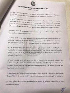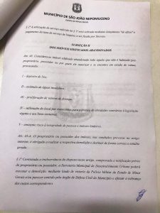 O prefeito de São João Nepomuceno, Ernandes José da Silva protocolou nesta sexta-feira 22 de março, na Câmara Municipal, para fins de apreciação e pretendida aprovação dos vereadores, o Projeto de Lei Complementar 02/2019 que altera a Lei Complementar nr. 14 de 15 de dezembro de 2010, que institui o novo “Código de Posturas no Município de São João Nepomuceno”. De acordo com o documento, que o PORTAL RKF teve acesso junto ao Procurador Geral do Município Dr. Michel Alves de Souza, o propósito é ” conferir maior eficiência e clareza ás disposições do Código de Posturas Municipais , mais especificamente no tocante á conservação dos imóveis urbanos edificados ou não de modo a possibilitar á municipalidade, tomar providências efetivas e aplicar penalidades no sentido de alcançar observância das obrigações dos munícipes quanto ás posturas exigidas na legislação municipal especialmente quanto á limpeza e conservação dos referidos imóveis”.