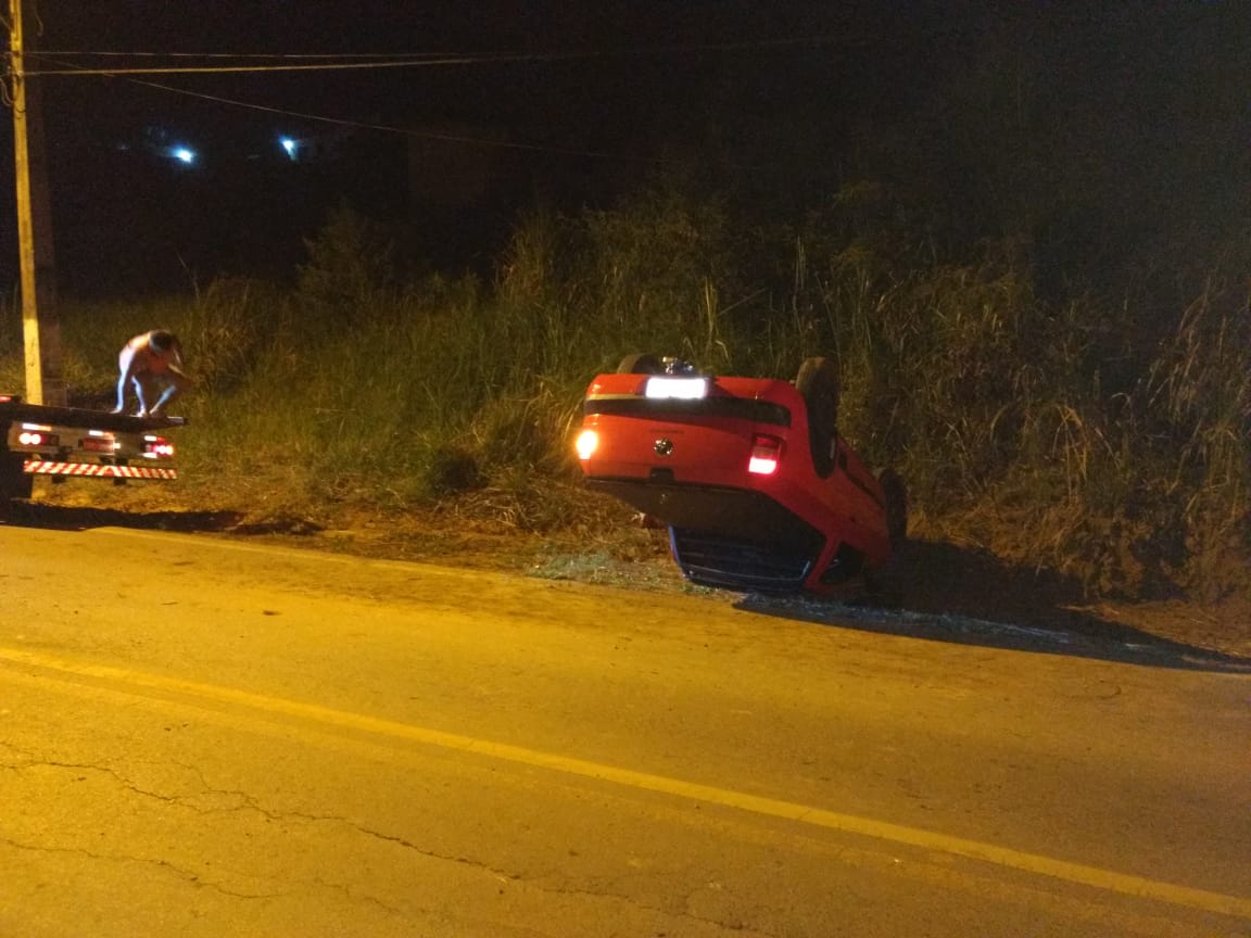 Carro é encontrado capotado e sem ocupantes na chegada de São João Nepomuceno.