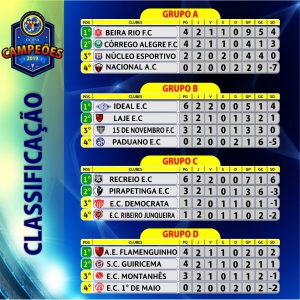 No Grupo D, o Flamenguinho e o Sport Guiricema lideram com 04 pontos, o Montanhês tem três e o 1º de Maio de Miraí não pontuou ainda.