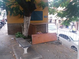 05/06/2019Um homem natural de São João Nepomuceno construiu um abrigo na Praça João Pedro de Almeida que fica localizada entre as ruas Galdino Furtado de Mendonça e Cônego Reis em São João Nepomuceno..Moradores e comerciantes ficaram apreensivos e entraram em contato com a redação do Portal RKF. O homem utilizou portas de madeira para construir o abrigo que possui como fundo a parede de uma residência.