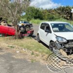 Casal fica ferido após caminhão carregado de granito tombar na BR-116 em Muriaé.