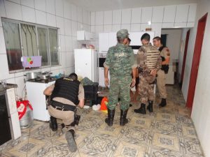 No local foram apreendidos 1.727 papelotes de substância análoga á cocaína que foram apreendidos, perfazendo um total apreendido de 1.807 papelotes. Dois conduzidos assumiram a responsabilidade pelo transporte e dolagem das drogas. Na residência foram localizados uma espingarda de ar comprimido de calibre 4,5 mm da marca Rossi e alguns utensílios para a dolagem das drogas como sacolés, faca, colher, tesoura, pratos e plástico filme para embalar. Foram conduzidos dois maiores de 24 e 19 anos e dois menores de 16 e 17 anos respectivamente de acordo coma PM.
