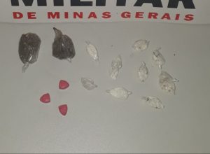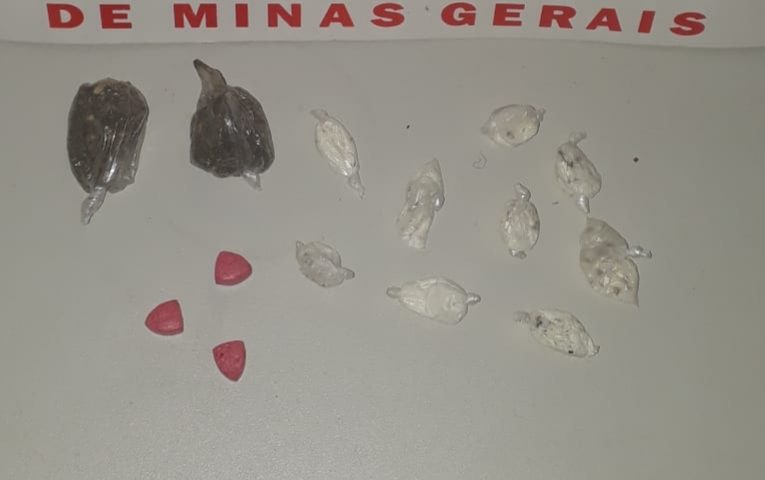 PM de Além Paraíba apreende mais de 3.000 pinos de cocaína e 800 buchas de maconha.