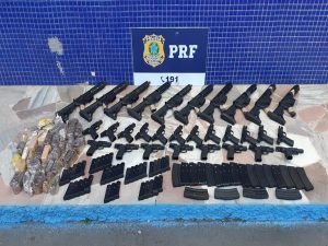Casal é preso em JF pela PRF com 10 fuzis, 20 pistolas e cerca de 3000 munições.