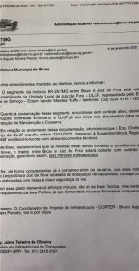 01/17/2020O site da prefeitura de Bicas publicou na tarde desta quinta-feira 16 de janeiro que “Reforçando os vários contatos que o prefeito Honório de Oliveira manteve com o deputado federal Charlles Evangelista, para a manutenção da BR 267, no trecho entre Bicas e Juiz de Fora, o vice-prefeito Luizinho Sales, igualmente, entrou em ação e, por intermédio do engenheiro Jaime Teixeira de Oliveira, Analista em Infraestrutura de Transportes do DNIT