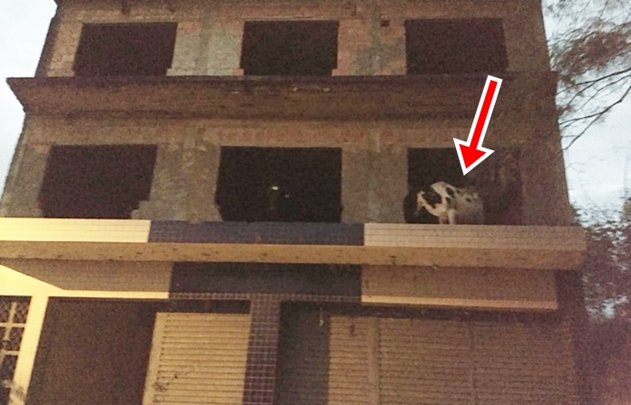 Vaca é avistada na sacada de prédio abandonado em SJN.