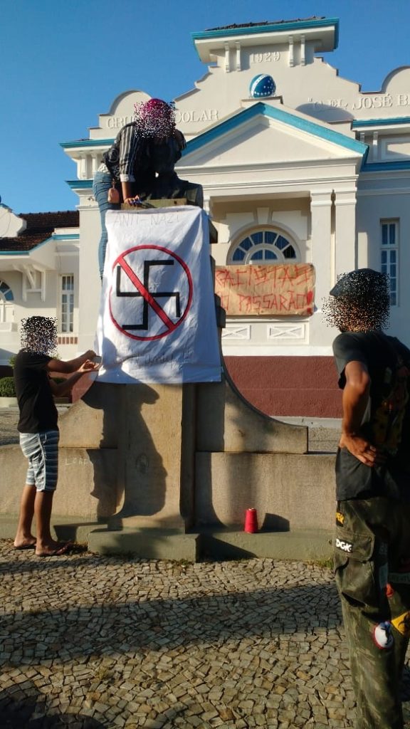 SJN: faixas em protestos contra nazismo e racismo são colocadas na ‘Praça do Coronel”