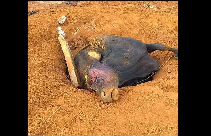 Descoberto: ladrões furtam gado e deixam vaca morta com crueldade para trás.