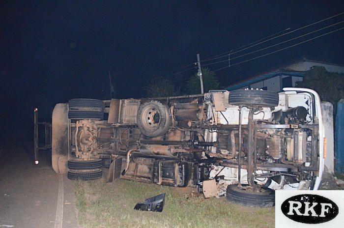 Motorista fica ferido após caminhão com bois tombar na MG-126 entre SJN e Rio Novo.