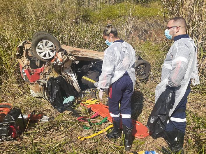 O acidente envolveu o veículo Toyota, da Saúde, que viajava de Juiz de Fora-MG para aquela cidade, com o motorista e uma paciente com a filha e um Jeep, placas de Muriaé-MG que segundo as autoridades, os três ocupantes não estavam no local no momento da chegada do socorro.As vítimas que estavam no outro veículo foram socorridas por um motorista que passava na hora e levadas para Casa de Saúde. Mais tarde foi informado que teriam sido socorridos por terceiros e levados para Muriaé.