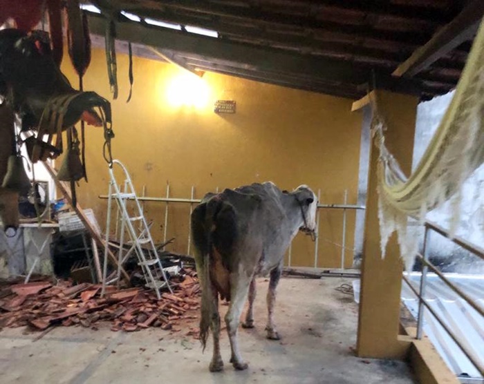 De acordo com informações obtidas junto a um dos moradores, esta é a terceira vez que um animal cai sobre o telhado daquele prédio. Antes, um cavalo e um bezerro foram as vítimas assustando a vizinhança. Uma cerca de arame estava danificada e permitiu a passagem da vaca do pasto para o telhado, que não suportou seu peso e começou a ceder vagarosamente até cair por completo.