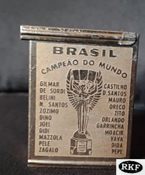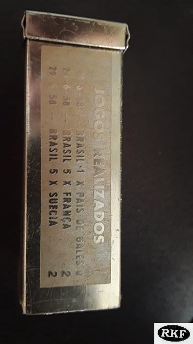 O artefato em metal, foi ofertado como brinde alusivo á Copa do Mundo de Futebol de 1958, vencida pela seleção brasileira na Suécia, com informações de jogos, escalação e comissão técnica.