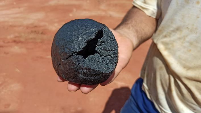 A rocha negra, parecendo ser porosa, deve ser enviada para o Departamento de Geologia da Universidade Federal de Viçosa, com quem já pediu para fazer contato. Lá será estudada para ver suas características.