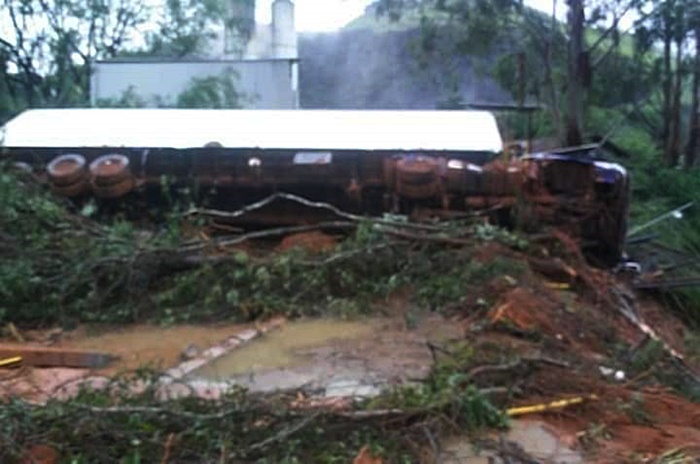 01/11/2021Parte da Estrada União Indústria que coincide com a BR-267 cedeu neste domingo 10 de janeiro no KM 97 próximo da Pedreira Santa Mônica entre Juiz de Fora. O motorista de 42 anos de idade que conduzia uma carreta carregada com pães que tombou ficou levemente ferido segundo a PMR. Ele quase caiu no Rio Paraibuna, em Juiz de Fora. Ele viajava de Caratinga para Juiz de Fora. A carreta quase foi carregada pela lama para o Rio Paraibuna. Chovia muito na hora do acidente.