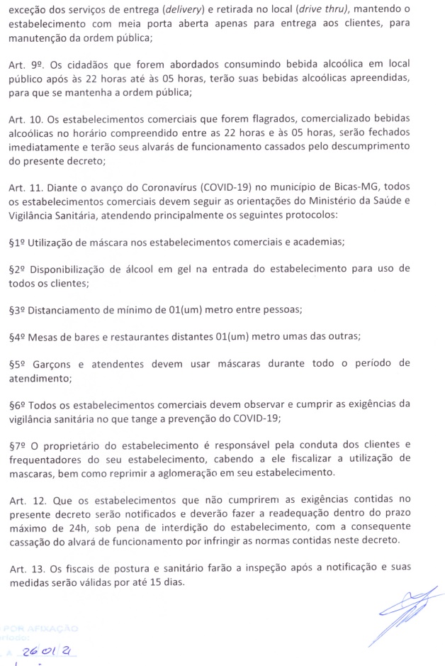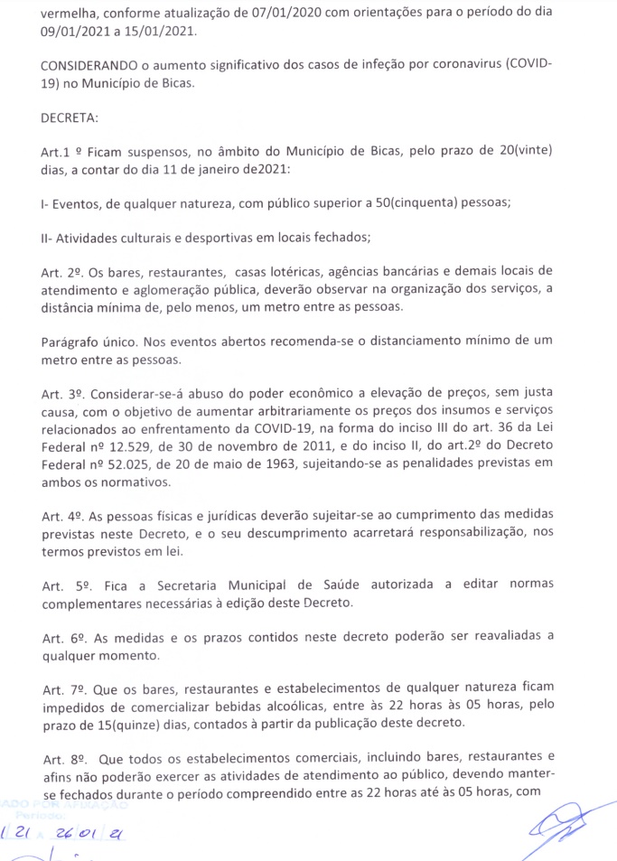 Abaixo o decreto na íntegra publicado no site a Prefeitura Municipal de Bicas .