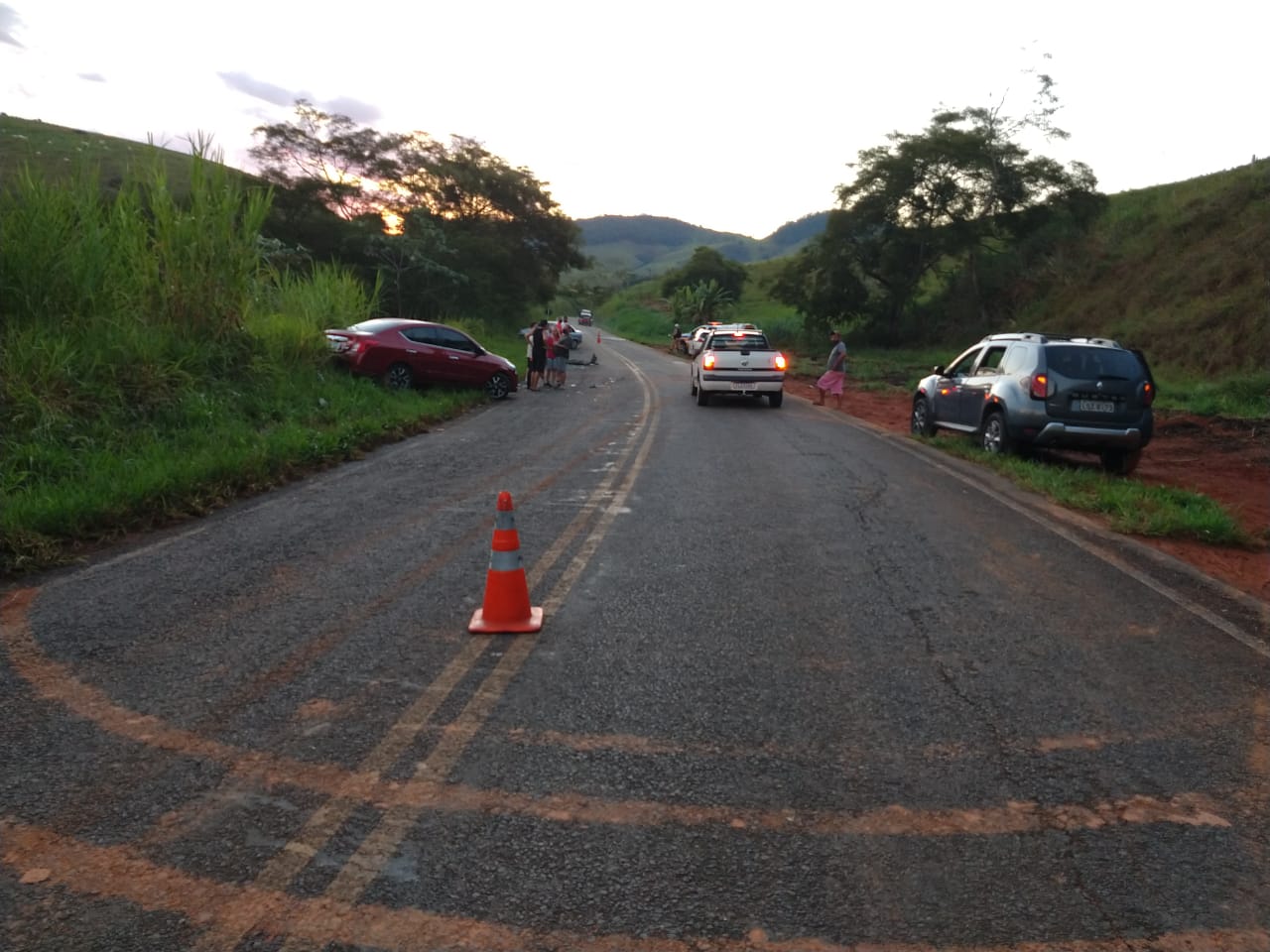 PMR registra colisão frontal entre dois carros na MG-126 em Rochedo.