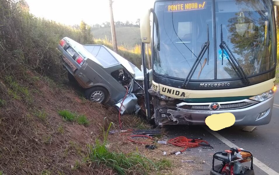 Colisão ônibus x carro deixa dois homens em estado grave em Viçosa.
