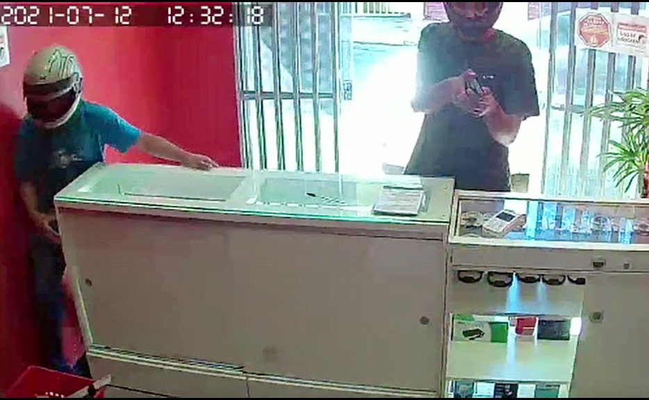 Dupla em motocicleta assalta loja á mão armada em Piraúba MG.