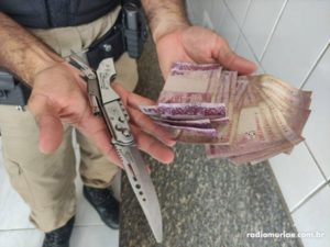 Câmeras de segurança registraram a ação do bandido e ajudou os policiais a localizá-lo. As notas e o canivete também foram encontrados com ele e foram apreendidas.