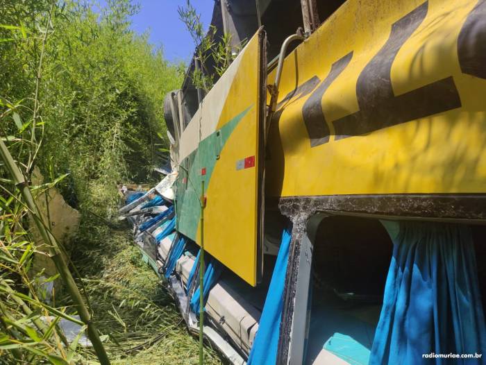 Ônibus cai em ribanceira em Leopoldina e deixa mortos e dezenas de feridos.