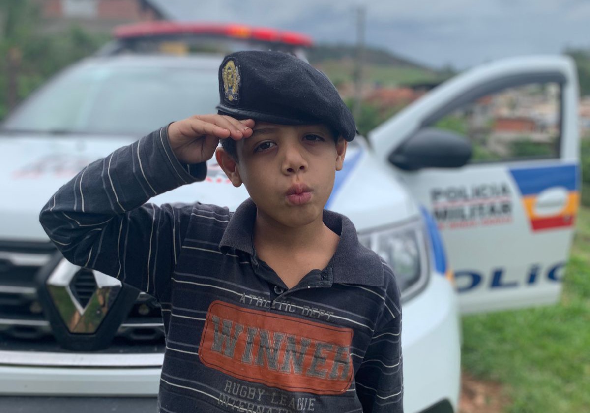 Garotinho de Mar de Espanha ganha festa surpresa da PM.