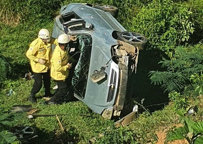 Motorista fica ferido após carro capotar e cair e ribanceira em Astolfo Dutra.