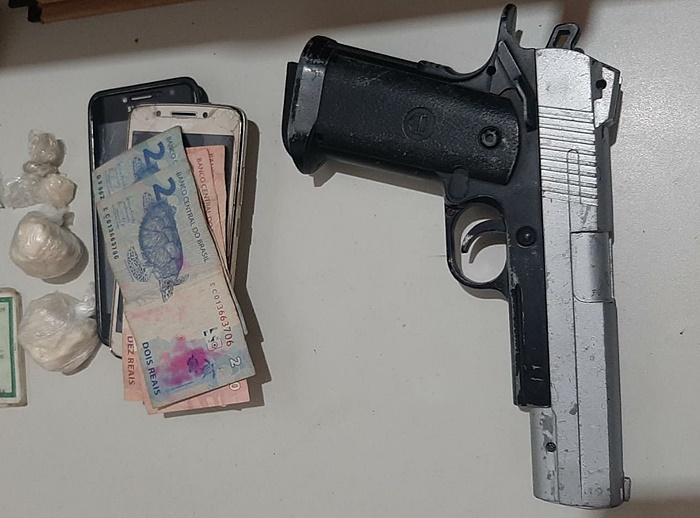 Goianá: policial de folga ajuda a deter dupla com droga e réplica de pistola.
