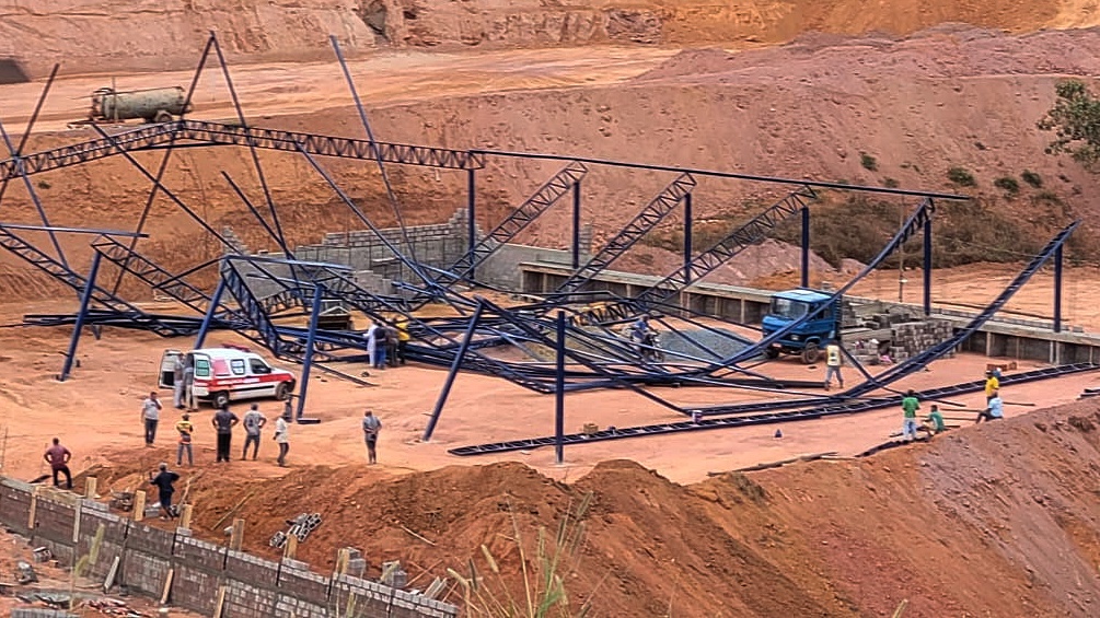 Parte de estrutura metálica desaba e três trabalhadores são socorridos em Maripá de Minas.