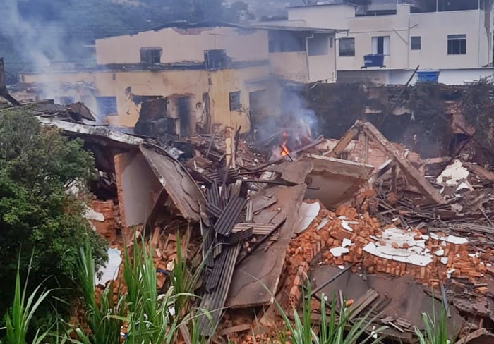 Duas casas desabam após explosão no Bairro Santa Terezinha em JF.