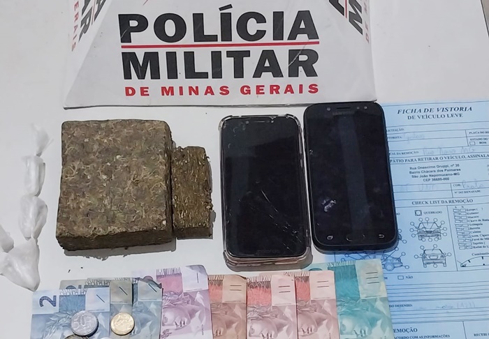 PM apreende drogas após abordagem de veículo em Rio Novo.