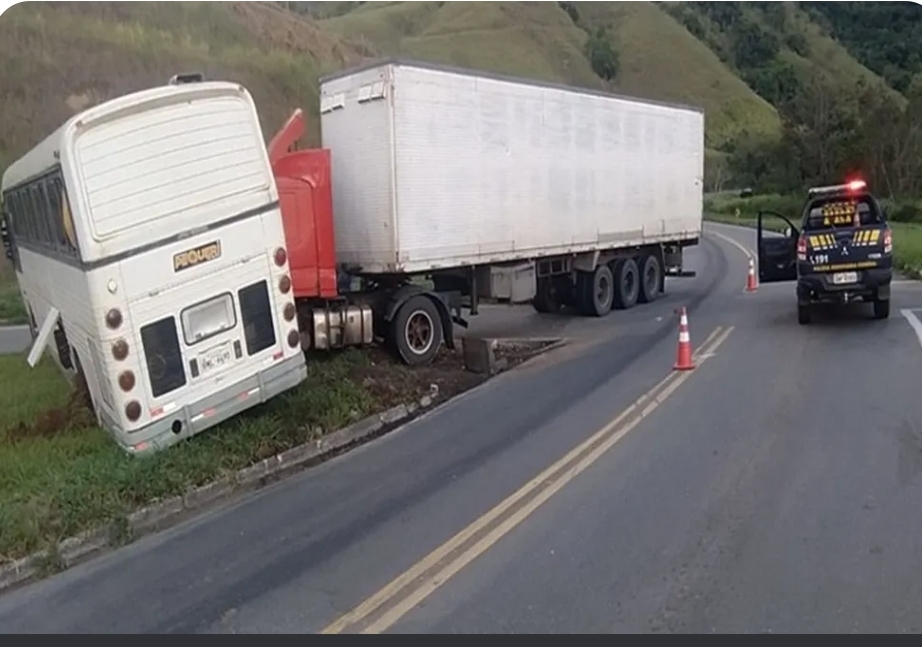 Colisão entre ônibus e carreta deixa feridos na BR-116 em Leopoldina