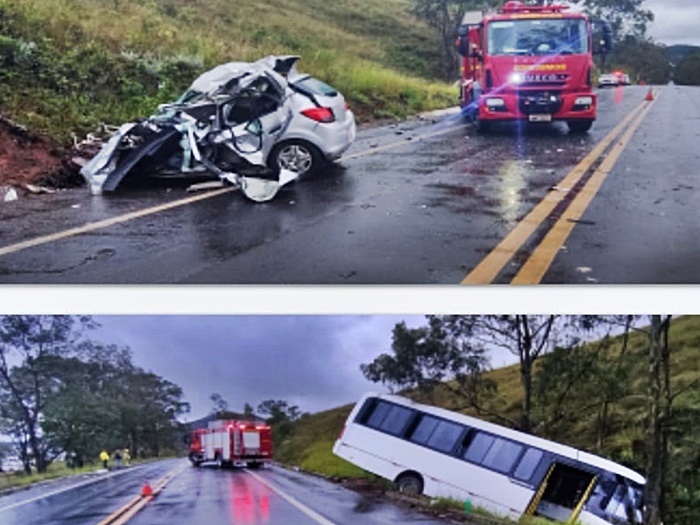 Colisão entre carro e micro-ônibus deixa um morto na BR-267 em Bom Jardim de Minas