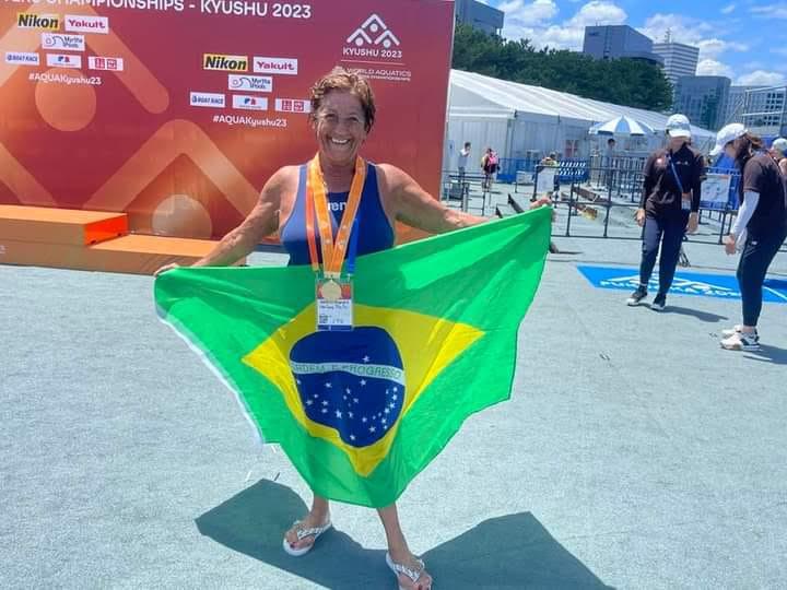 Orgulho de SJN: Herilene de Freitas é campeã mundial de maratona aquática no Japão.