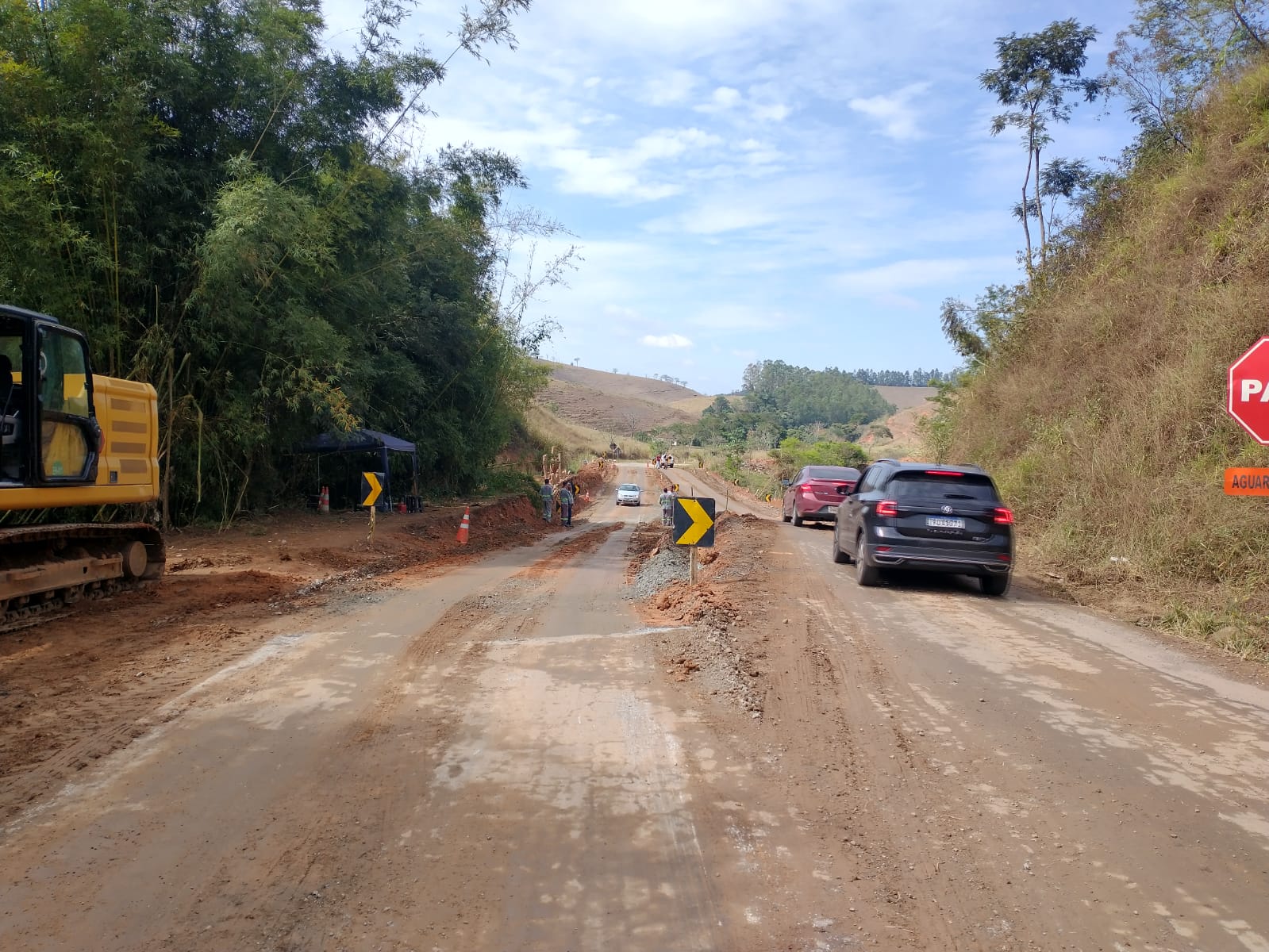 Trecho da pista no KM 22 da MG 133 em Tabuleiro está em obras.
