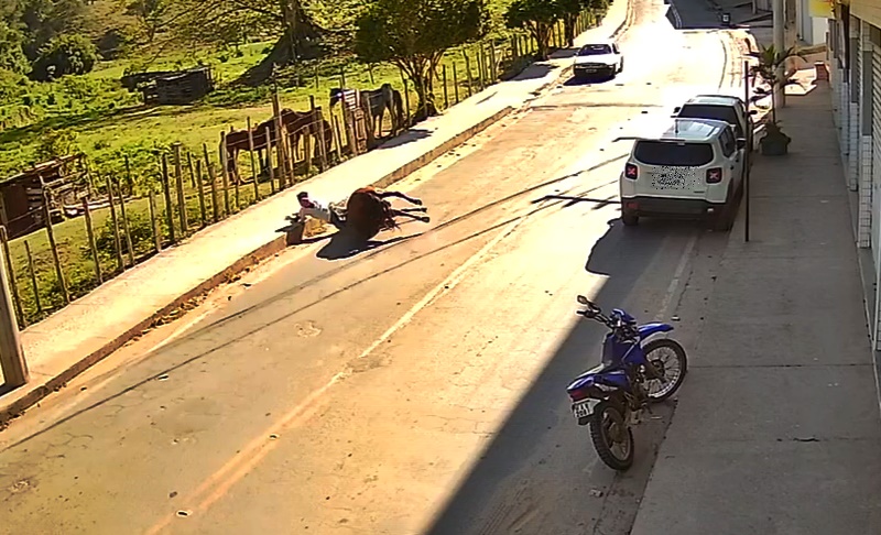 Homem é socorrido após cair do cavalo em Mar de Espanha.