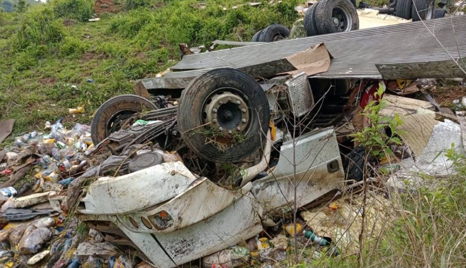 Caminhão cai em ribanceira e deixa um morto e dois feridos em Leopoldina