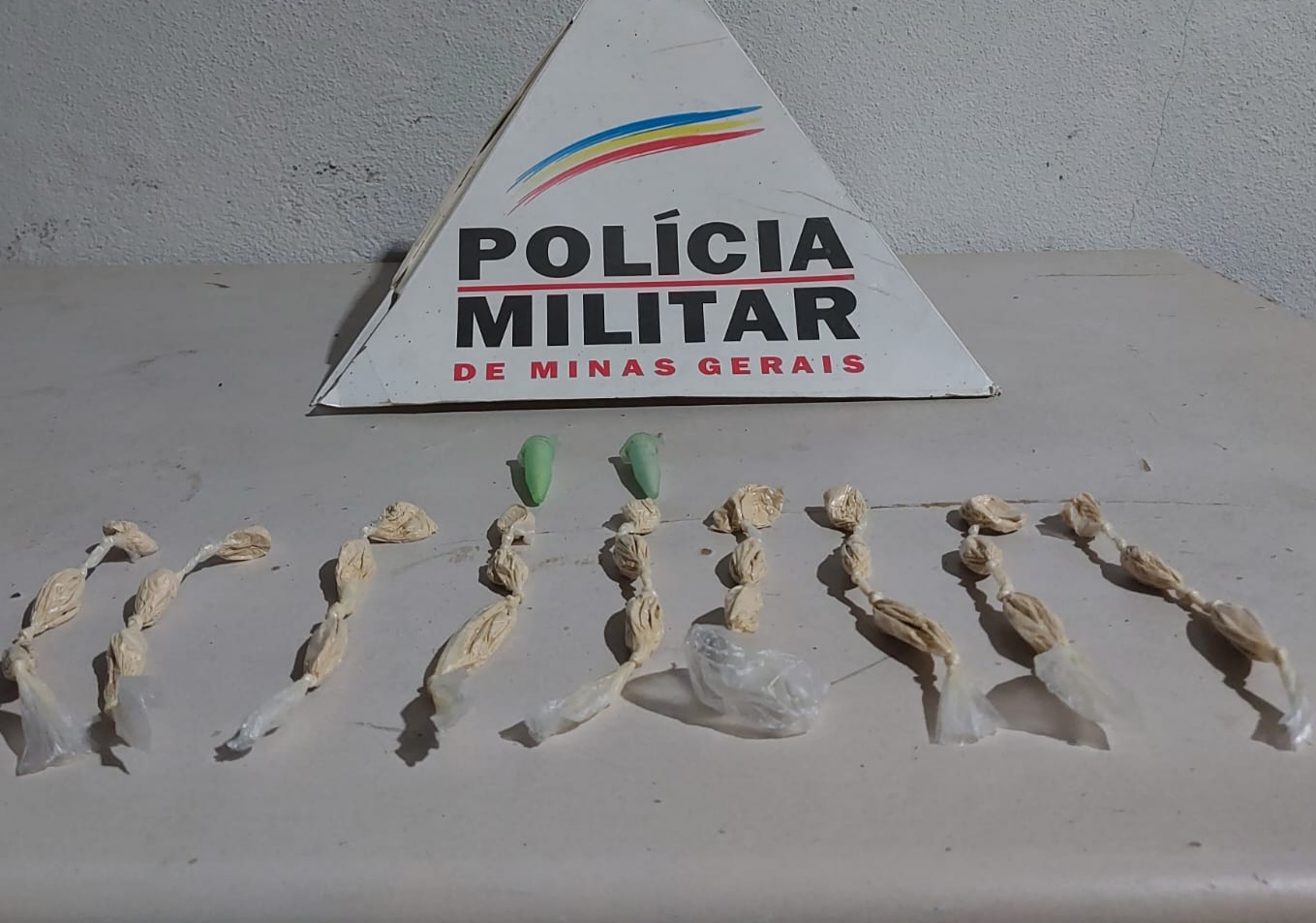 Jovem é preso pela PM por tráfico de drogas em Rio Novo.