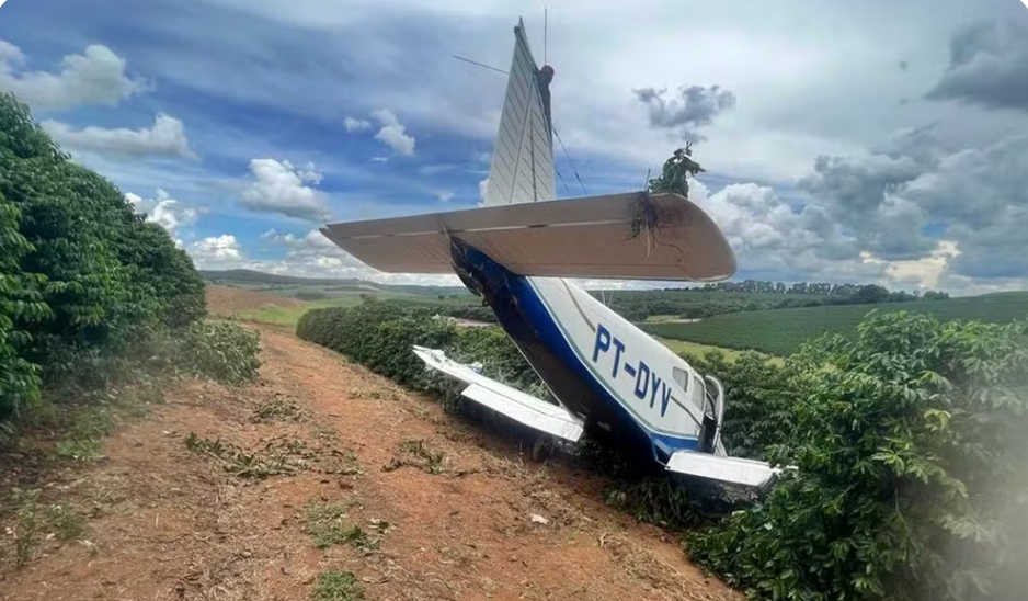 Avião decola de Muriaé e faz pouso de emergência em cafezal no Sul de Minas