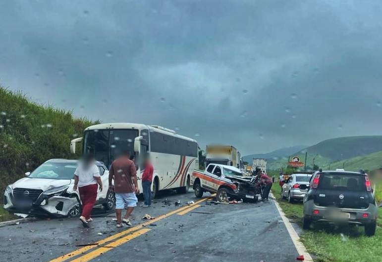 Acidente envolvendo quatro veículos deixa feridos na BR-267 em Bicas