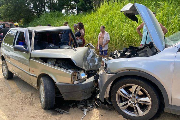 Colisão frontal entre dois automóveis deixa condutor ferido em Muriaé.