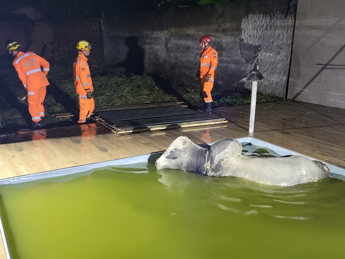 Bombeiros resgatam boi que caiu em piscina em Juiz de Fora