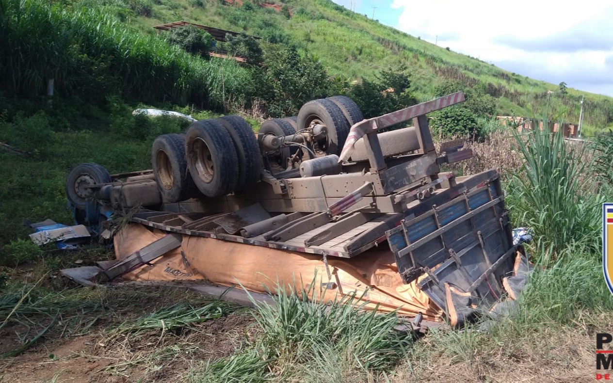 Um homem morre e outro fica em estado grave após caminhão tombar em Cel.Pacheco