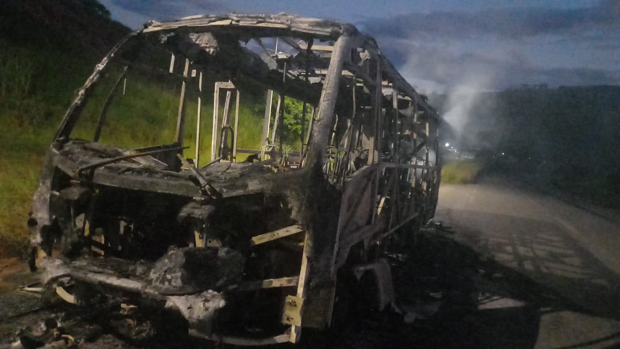 Ônibus com integrantes da bateria do Tigrão de Rio Pomba pega fogo.