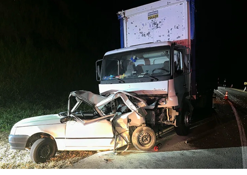 Casal morre em batida entre carro e caminhão em Leopoldina.