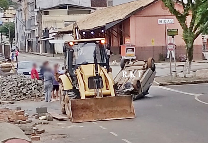 Carro capota perto da rodoviária na madrugada em Bicas MG.