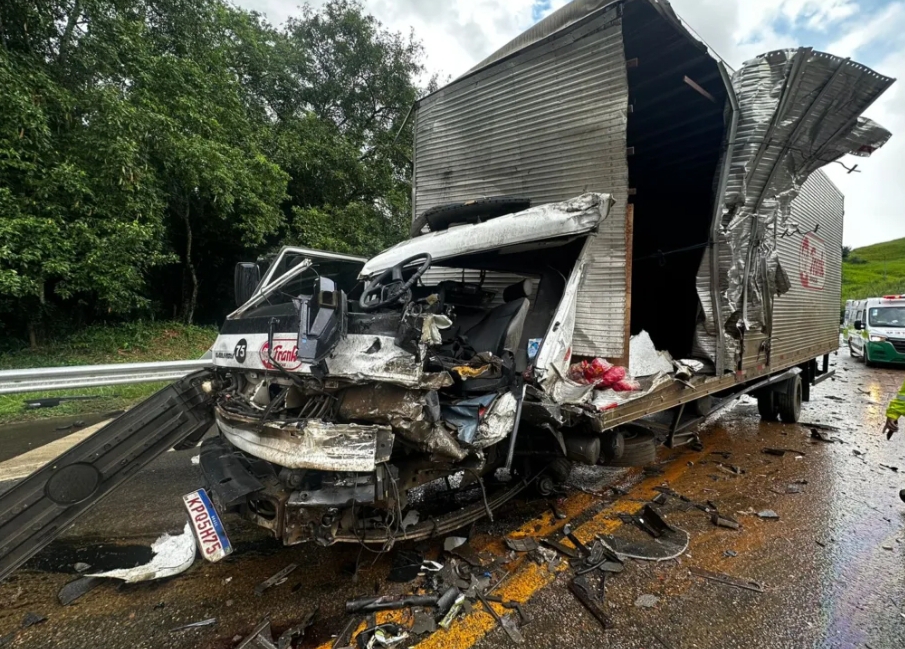 Acidente entre carreta e caminhão deixa feridos em Leopoldina na BR-116.