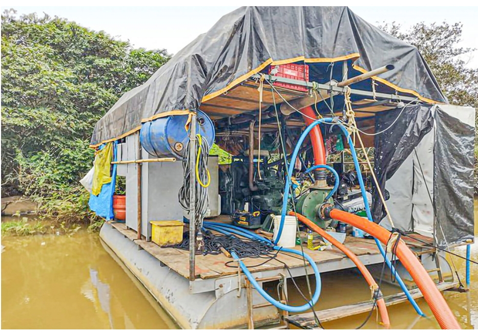 PMMAmb flagra balsa fazendo extração ilegal de ouro em Cataguases