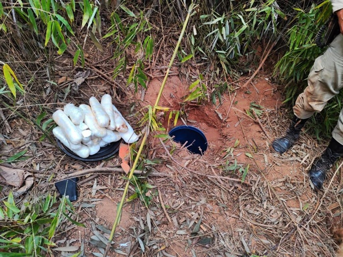 PM apreende 40 mil papelotes de cocaína enterrados em pasto de Muriaé.