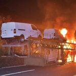 Carreta bate em barranco, tomba e fica atravessada na BR-116, em Muriaé